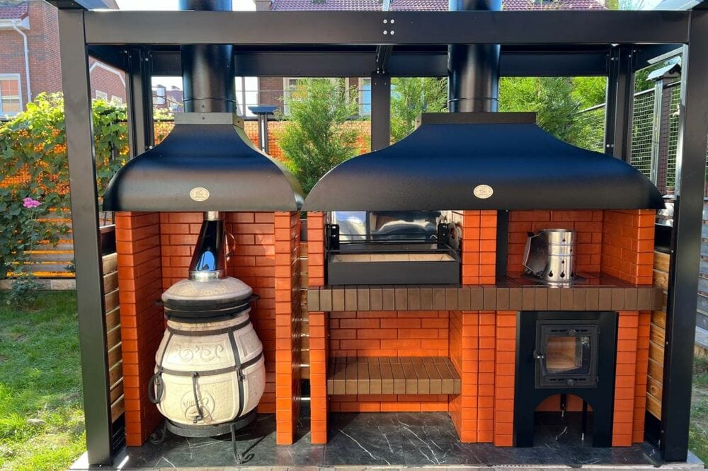 Строительство печи-барбекю для дачи из кирпича очень трудоемкий процесс, который требует знаний печной кладки, сил и времени. Мы разработали такой конструктив, благодаря которому выложить мини-барбекю для беседки или уличное исполнение из кирпича можно всего за несколько часов и даже своими руками. Если вы решили сложить печь для мангала и казана самостоятельно, то в комплекте будет подробная инструкция по сборке и сама сборка осуществляется по принципу лего-кирпича. Стоимость кладки нашей компанией указана в разделе «Подробнее» для каждого Товара отдельно. Помимо этого, мы осуществляем монтаж дымоходов КДМ с узлом прохода кровли и перекрытия. Варианты мангальных печей-барбекю из кирпича для использования на дровах, которые мы можем Вам предложить: с печью под казан, угловые варианты, с нишей под тандыр, с помпейской или русской печью, садовая печь, маленькое барбекю, для дачи, для беседки и даже для улицы.